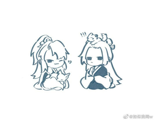 倾予九川's doodle for the author. Left: JL; Right: QZX (Source: author's friend on Weibo.)
